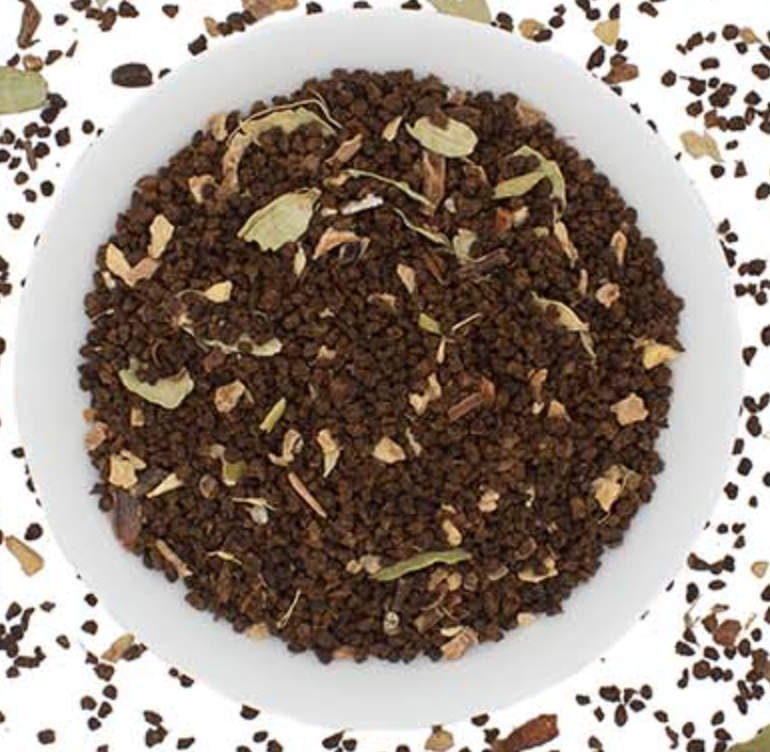 Ingredients: Assam CTC BOP*, Cloves*, Ginger Root*, Cardamom*, Black Pepper*, Star Anise*, Natural Flavors (Organic compliant).