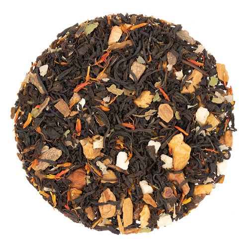 - Ingredients: Black tea, Apple pieces, Cinnamon, Blackberry leaves, Safflower petals, Natural flavors (Organic Compliant).